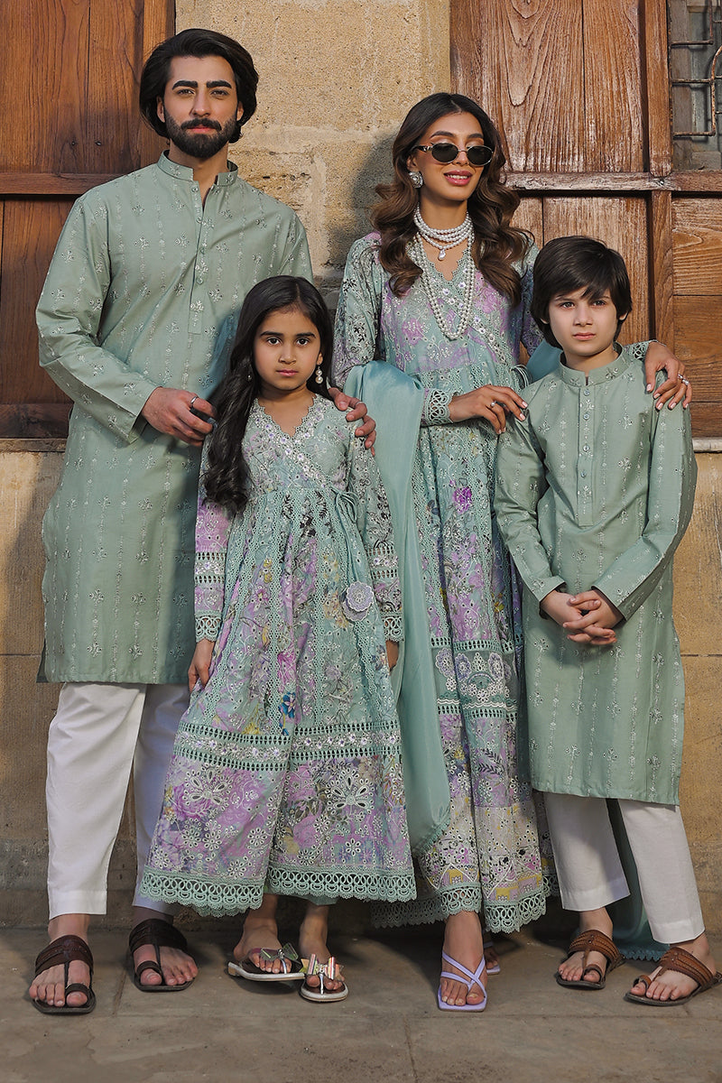 Sage Green Harmony: Our in-house chikan Kari kurta, featuring delicate schiffli detailing, brings harmony to your style. Paired with straight pants, it's a soothing choice.